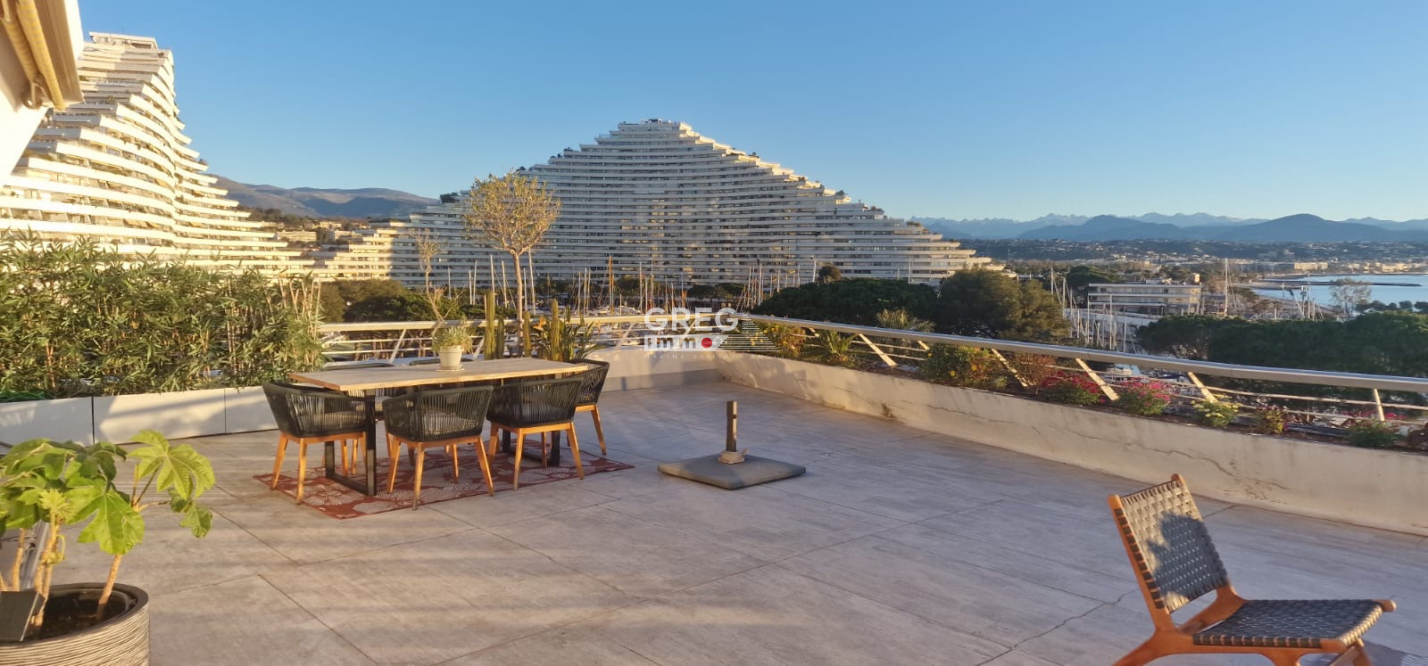 Pieds dans l'eau, étage élevé, Appartement 4/5 pièces avec grande terrasse d'angle à Villeneuve-Loubet plage