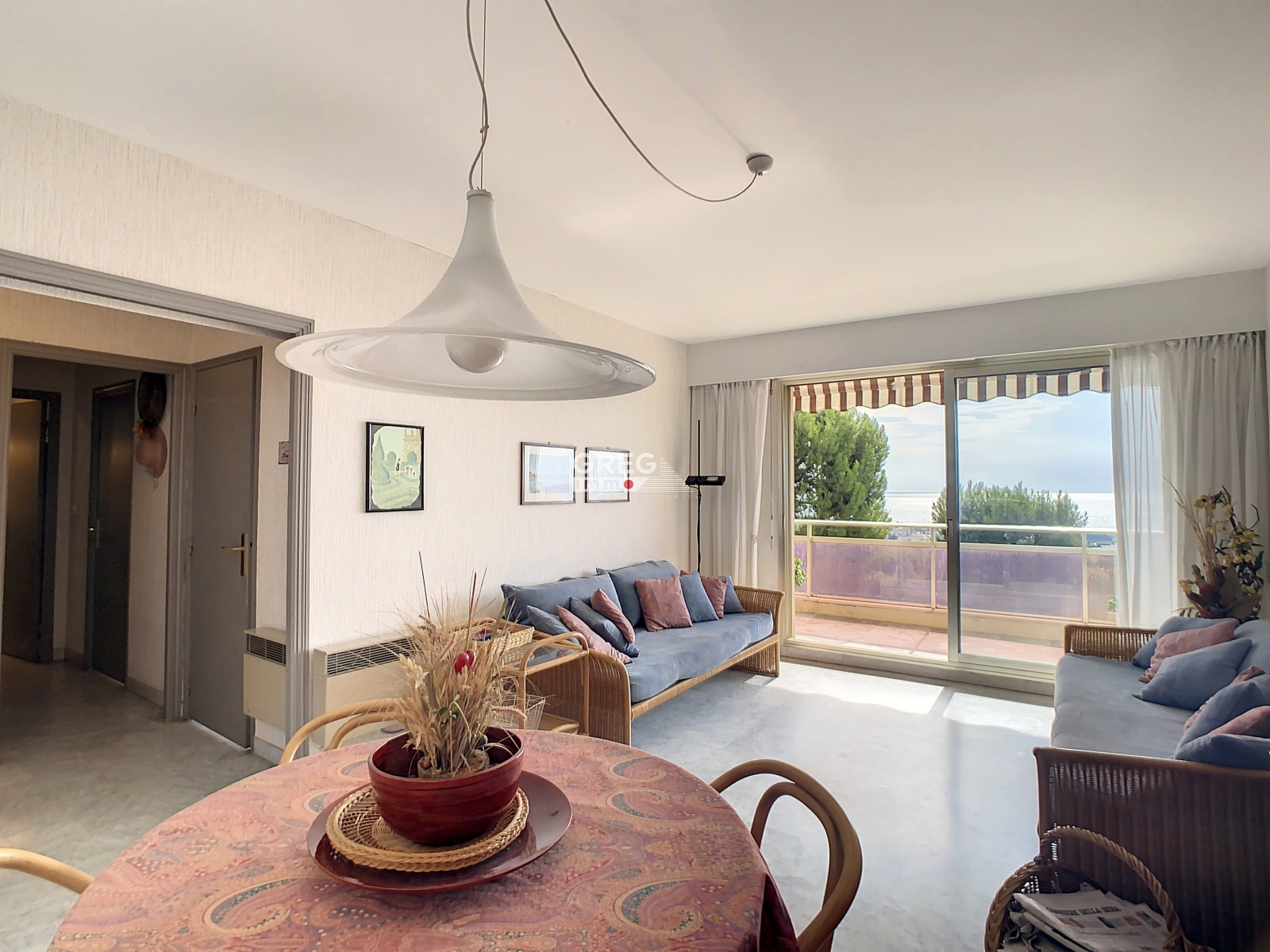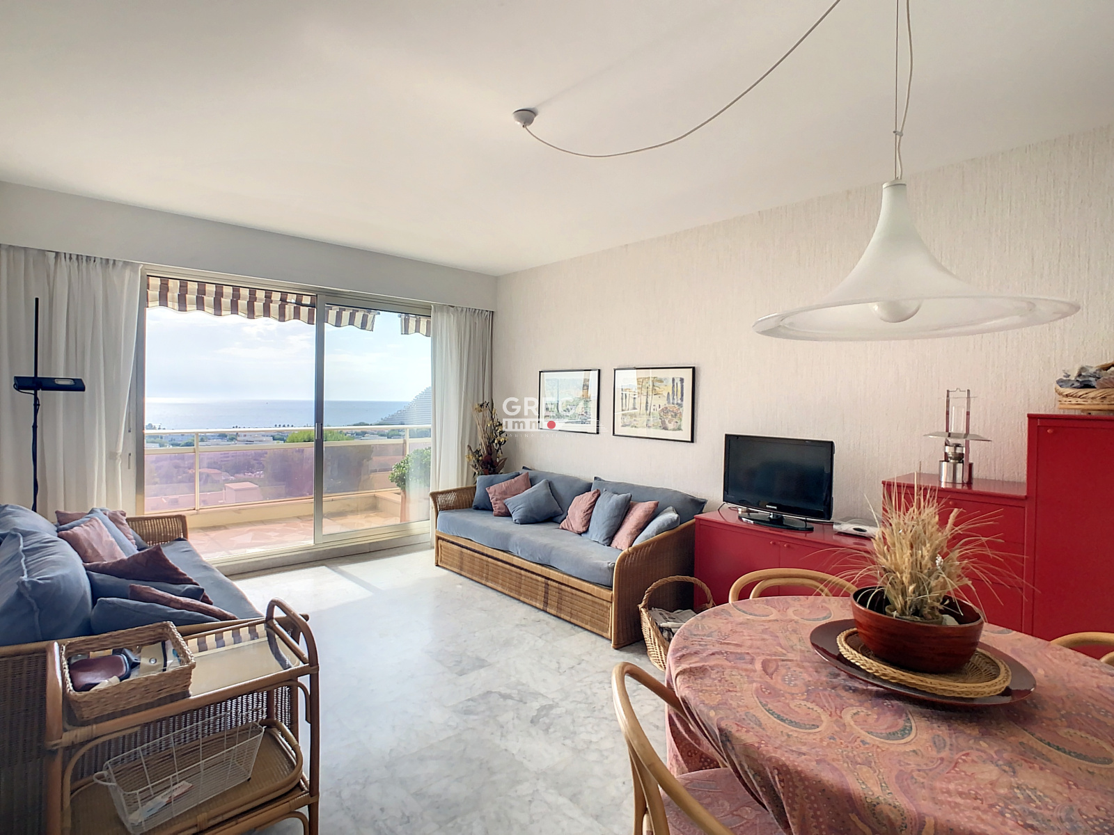 Villeneuve Loubet, dans une résidence de standing avec gardiennage, piscine et tennis, sur la partie haute de la résidence, au dernier étage avec une magnifique vue mer. Grand 2 pièces de 51m2 avec une terrasse de 17m2. Cet appartement se compose d'une entrée avec placard, d'un séjour, d'une cuisine indépendante aménagée et d'une chambre donnant sur la terrasse, salle de bains, WC indépendant. Une cave et un garage sous/sol complètent ce bien. Rare! A voir!